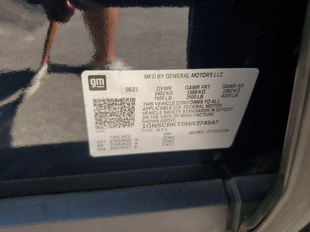 Preferred Equipment Group 1SP: Bright Front and Rear Door Sill Plates; Hands-Free Rear Power Programmable Liftgate; Perforated Leather Seat Trim; 1st and 2nd Row Color-Keyed Carpeted Floor Mats; Remote Start; Floor Console with Storage Area; Chevrolet Infotainment 3 Plus System Radio; HD Radio; SiriusXM Radio with 360L; Leather-Wrapped Steering Wheel; 22" X 9" Bright Machined Wheels; LED Daytime Running Lamps; Infotainment Display; Driver and Front Outboard Passenger Airbags; Auto-Dimming Inside Rearview Mirror; Memory Settings For Driver; Front High-Back Reclining Bucket Seats; 2 USB Data Ports; 275/50R22SL AS BW Tires; Universal Home Remote; Color-Keyed Carpeting Floor Covering. **Equipment listed is based on original vehicle build and subject to change. Please confirm the accuracy of the included equipment by calling the dealer prior to purchase.**